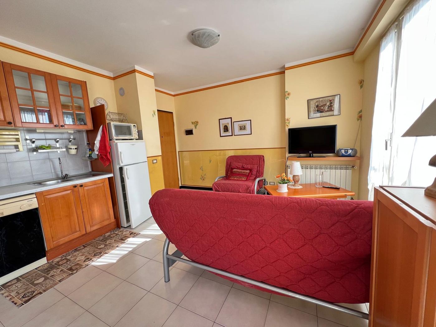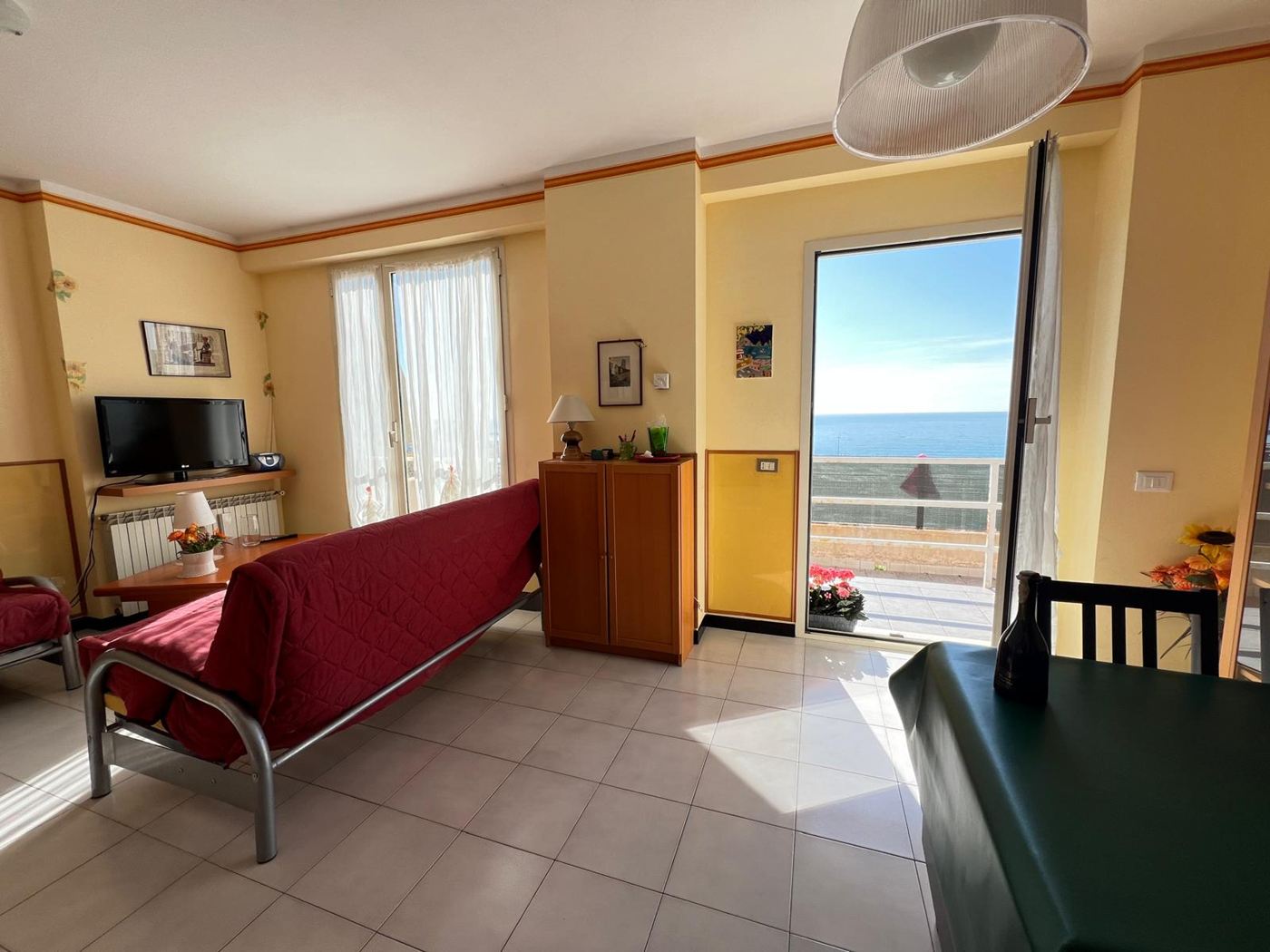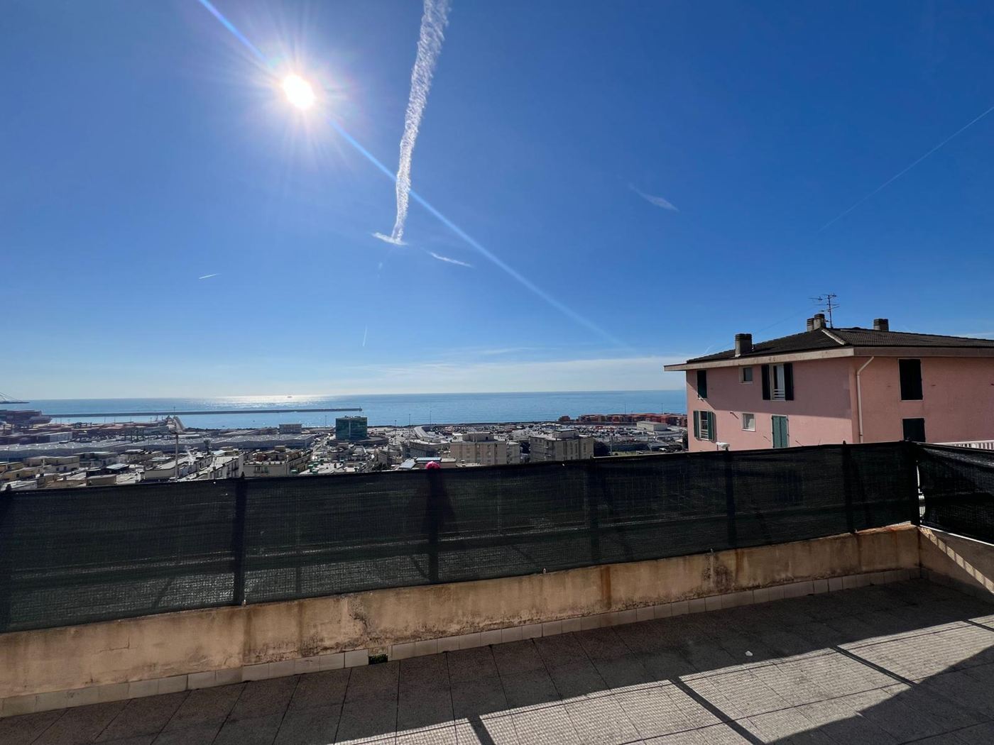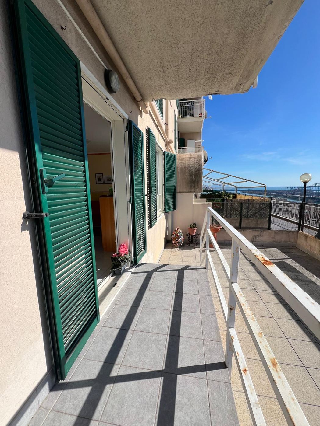 Nella parte alta di Prà, in posizione tranquilla e soleggiata, proponiamo in vendita luminosissimo appartamento con splendida vista mare, caratterizzato da esposizione principale a Sud.L’immobile si trova al primo piano rialzato, ma grazie all’affaccio aperto gode di una prospettiva e luminosità paragonabili a un piano alto. L’ingresso si apre su un’ampia zona giorno open space con angolo cottura e zona pranzo, ambiente accogliente e ben distribuito, con accesso diretto a uno straordinario terrazzo al piano di circa 90 mq, ideale per chi desidera uno spazio esterno vivibile tutto l’anno. L' appartamento comprende Camera matrimoniale con doppia finestra e accesso al terrazzo dotata di pratico ripostiglio trasformabile in cabina armadio e un Bagno con vasca L’immobile si presenta in buone condizioni interne ed è dotato di Infissi con doppio vetro,Porta blindata,Riscaldamento termoautonomo Spese di gestione contenute Completano la proprietà la comodità ai servizi, con supermercato e capolinea dell’autobus circolare nelle immediate vicinanze. Possibilità di posto auto, venduto separatamente.