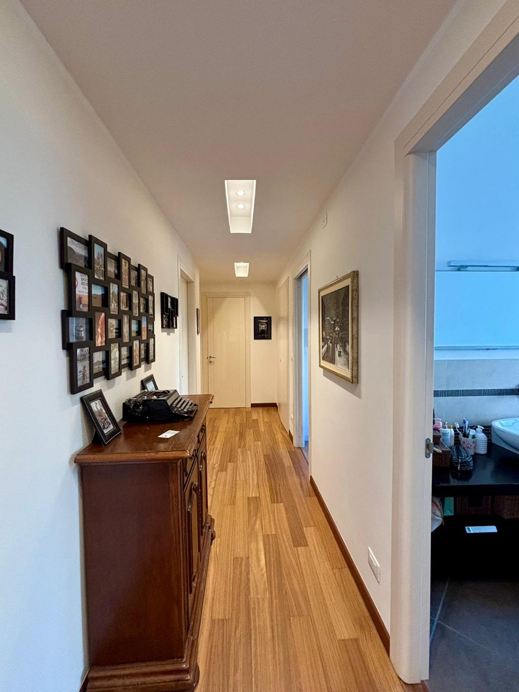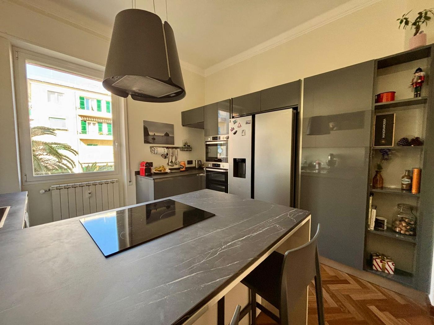 La cucina è funzionale e dotata di tutti i comfort, con una lavanderia separata per una gestione ottimale degli spazi. Non mancano armadi a muro e una cabina armadio, per tenere tutto in ordine. La balconata vivibile regala una vista mare mozzafiato, ideale per godersi momenti di relax all'aperto.