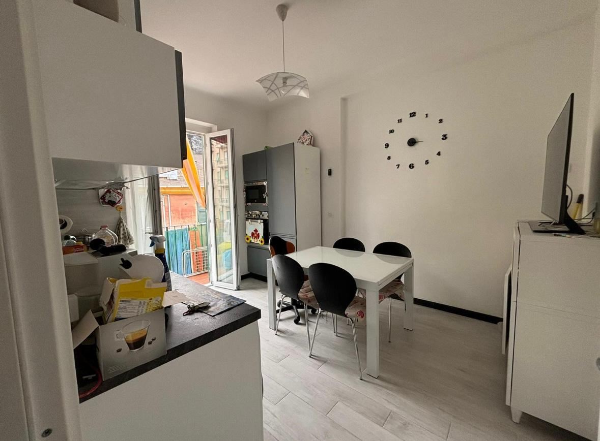 SESTRI PONENTE, VIA SPARTA, proponiamo in vendita ottimo appartamento di 5 VANI CON BALCONE, posto al terzo piano di un palazzo provvisto di ascensore. Così composto: Ingresso arredabile, due camere da letto, cucina abitabile, bagno e dispensa. L' appartamento è dotato di impianto a norma e certificato di aria condizionata, porta blindata e infissi doppio vetro. Prezzo richiesto: € 95.000,00 CL G IMMOBILIARE SP SESTRI PONENTE 010.650.80.80